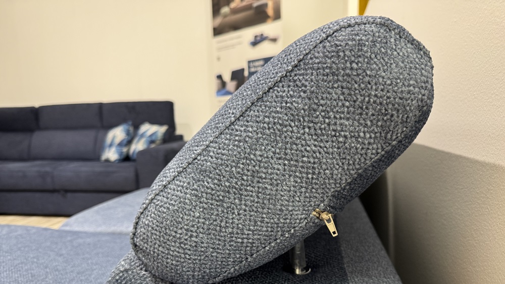 Divano fisso versione 3 posti l.212 cm h.84 p.107 con due poggiatesta reclyner e due relax. Tessuto idrorepellente e antimacchia. Piedino alto.